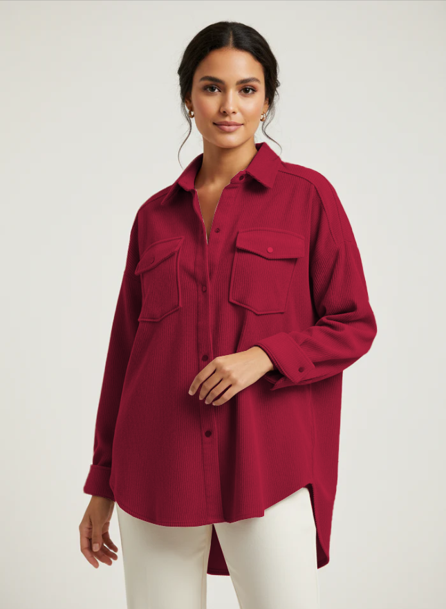 قميص قطيفه مضلع شتوي بأكمام طويله