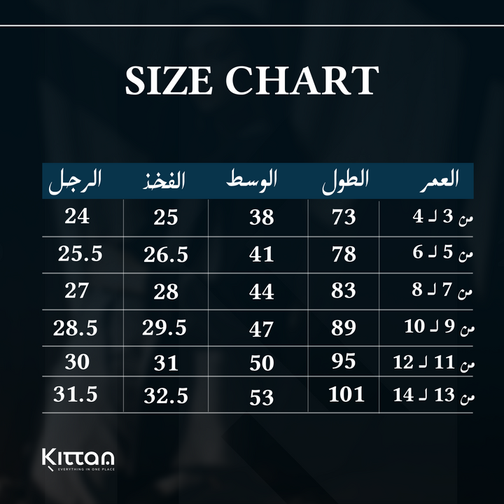 من 3 لـ 4 سنوات, من 5 لـ 6 سنوات, من 7 لـ 8 سنوات, من 9 لـ 10 سنوات, من 11 لـ 12 سنة, من 13 لـ 14 سنة |