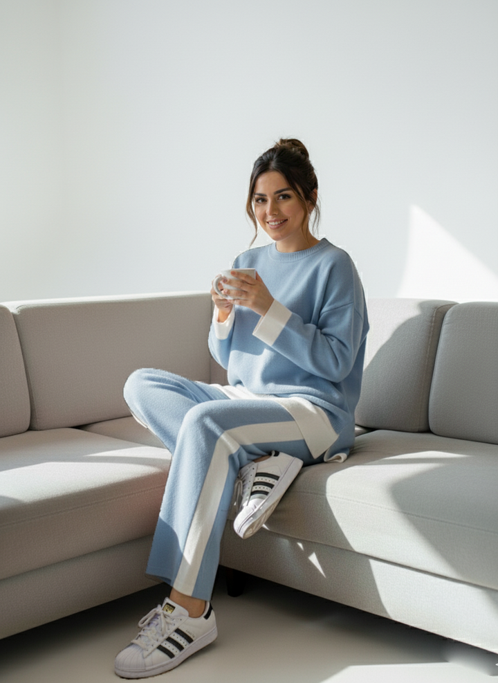 سوت تريكو عجينة مكون من بلوفر وبنطلون.